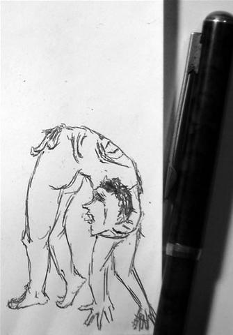 (摘錄自書中):『他們的頭一百八十度轉向背脊,然後彎腰折向臀部,眼光只能盯著自己的臀部,因為看不見前方,而不得不退著向後走。』
