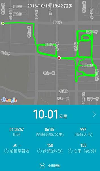 至於最重要的慢跑,小米運動app的使用也很便捷,唯一的缺點是:app在慢跑時,顯示的配速、距離等等,文字大小太小,不像nike+地方便閱讀。但這也無傷大雅,目前,使用小米運動時,我主要是聽耳機的app提示(是講中文的女聲,這比nike+的英文提示更直覺了!)只要設定好心率的警告提示,接著就一路奔跑,配合每公里的配速報告,進行跑步的速度的調整。