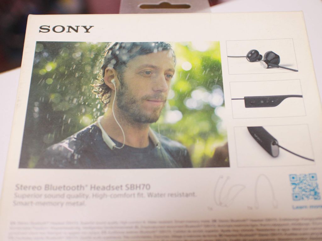 要成為跑步用的耳機,最重要的一點莫過於「防水」,這一點而言SBH 70絕對可以勝任,從其包裝盒就可看出它的特點。另外,Sony在光學、音響產品方面一向有其堅持與風格,這隻耳機有著動聽的中、高音,低音相比之下顯得很貧乏,原因是這乃是一隻「開放式耳機」,並非封閉的耳道式設計。所以喜歡享受節奏感衝擊的人,要買這隻耳機得考慮一下了。然而我認為這卻是一副最適合「路跑」的耳機,就像騎機車不該帶內耳式耳機一樣的道理。安全是需要被考輛的重要因素,如果是你常在馬路上跑步的跑者,開放式的耳機才能讓你在安心享受音樂之餘,同時注意到路況。甚至是比賽時,這付耳機也才能讓你在聽歌的同時,感受現場的氣氛,並且與志工互動(例如詢問全馬、半馬是否該轉彎了之類事項)。