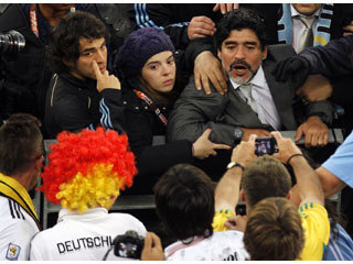 一個穿著「德國」球衣的球迷,竟對著「金童」馬拉度納叫囂。試想,這個球迷,他嚐過金盃的榮耀嗎?他嚐過決賽心碎的滋味嗎?他肩負過全國球迷的期待嗎?甚至他會不會踢球?都是個問題。